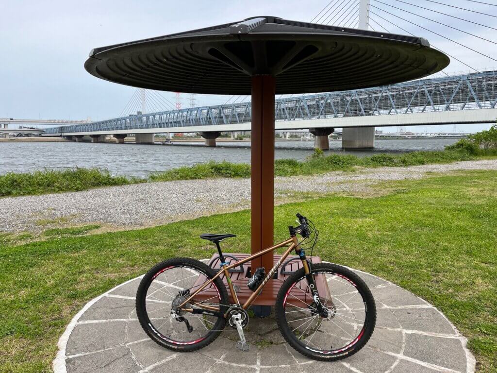 その後、午後から久しぶりにマウンテンバイクのナイナーで荒川河川敷に向かった。