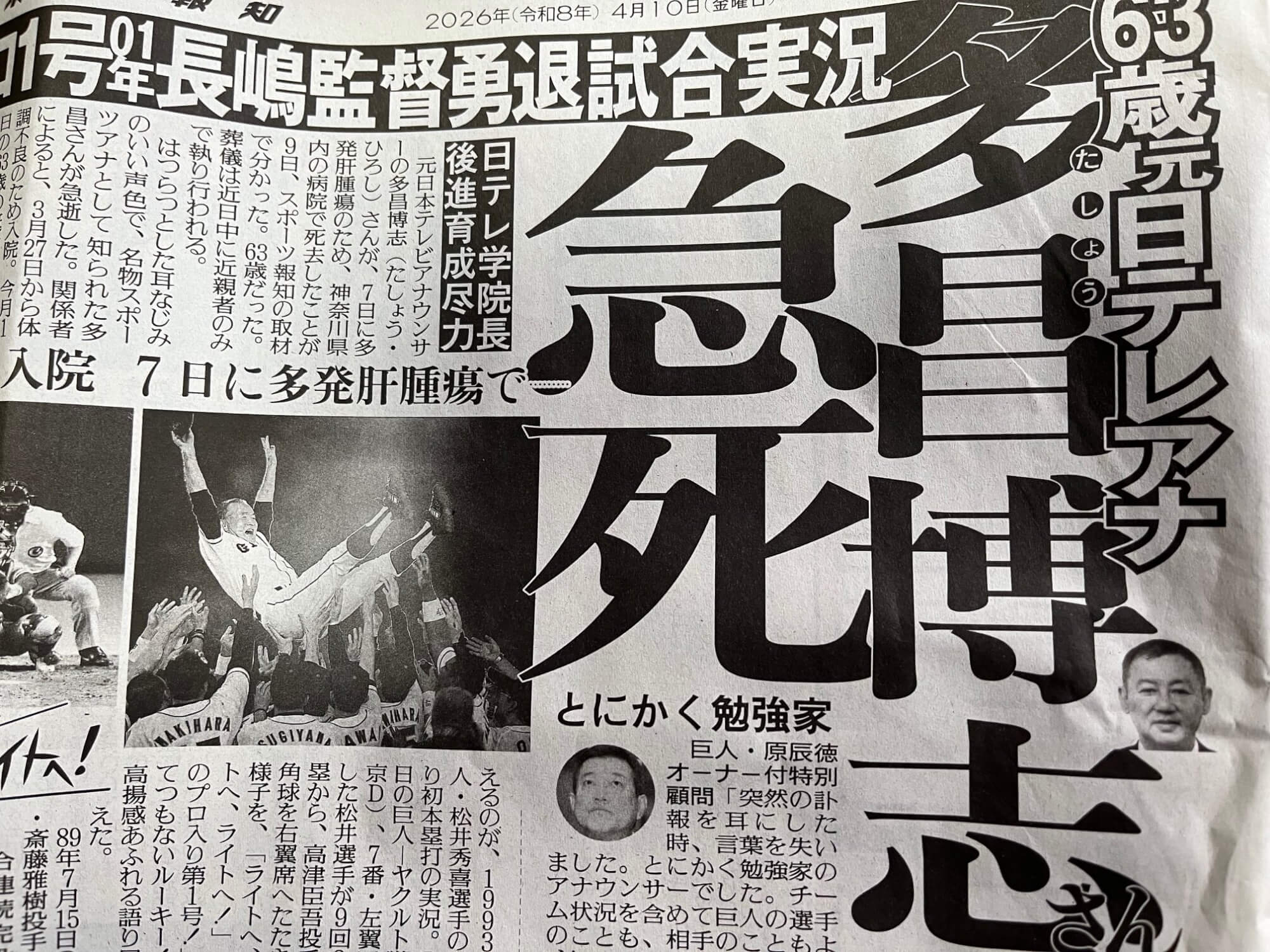 2026-04-10 Blog 元日本テレビアナウンサー多昌博志さんを悼む 今朝、Yahoo!ニュースで多昌博志さんの訃報に接した時は驚いた。すぐには現実と思えず、何かの間違いではないか...続きを読む...
